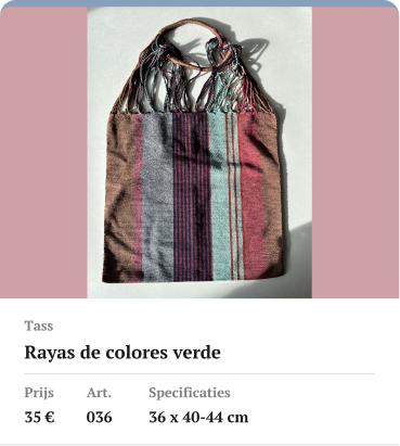 Bestelinformatie Ecuador Hangmatten Tapori Kerstartikelen Ponchos en haarbanden uit Ecuador Sjaals uit Ecuador Ronde Sjaals uit Ecuador Andere artikelen uit Ecuador Bestelinformatie Ecuador Hangmatten Tapori Kerstartikelen Ponchos en haarbanden uit Ecuador Sjaals uit Ecuador Ronde Sjaals uit Ecuador Andere artikelen uit Ecuador
