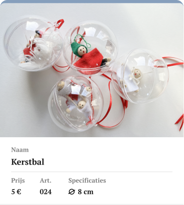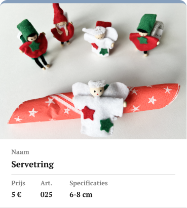 De Kerstartikelen hieronder worden in Tapori gemaakt.